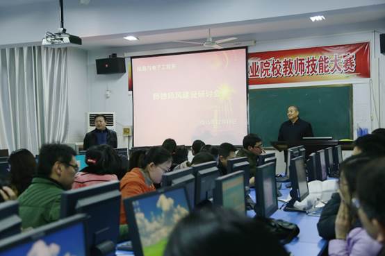 最后,系总支书记潘胜寒做了总结,要求全系教师做到“有师德、有仁爱、有信仰”,树立终身学习理念,拓宽知识视野,更新知识结构。潜心钻研业务,勇于探索创新,不断提高自己的专业素养和教育教学水平。特别勉励青年老师们要不断学习使自己成为教育技术和专业技能过硬“双师型”教师。