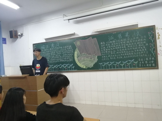 为了弘扬诚信精神,加强同学们的诚信意识,以积极乐观,诚实守信的态度去面对考试。williamhill威廉希尔于2019年6月13日在教学楼A座3楼召开以“端正考风,诚信考试”为主题的团课。