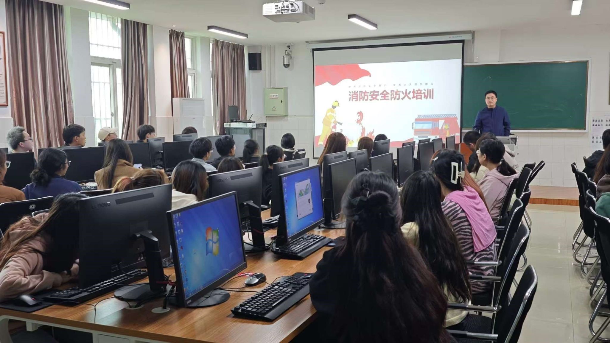 近年来,随着信息技术的发展,各类电子设备使用频率增加,实验室消防安全问题日益突出。为了预防和减少火灾事故的发生,保障师生的生命财产安全,特举办此次消防安全教育培训活动。首先,培训师生认真聆听了薛宾田老师的讲座,他为师生们详细讲解了实验室常见的火灾隐患及其防范措施,包括如何正确使用灭火器、紧急疏散流程等内容。然后,组织师生进行了灭火器使用实操训练以及模拟疏散演练,通过亲身体验加深对理论知识的理解。