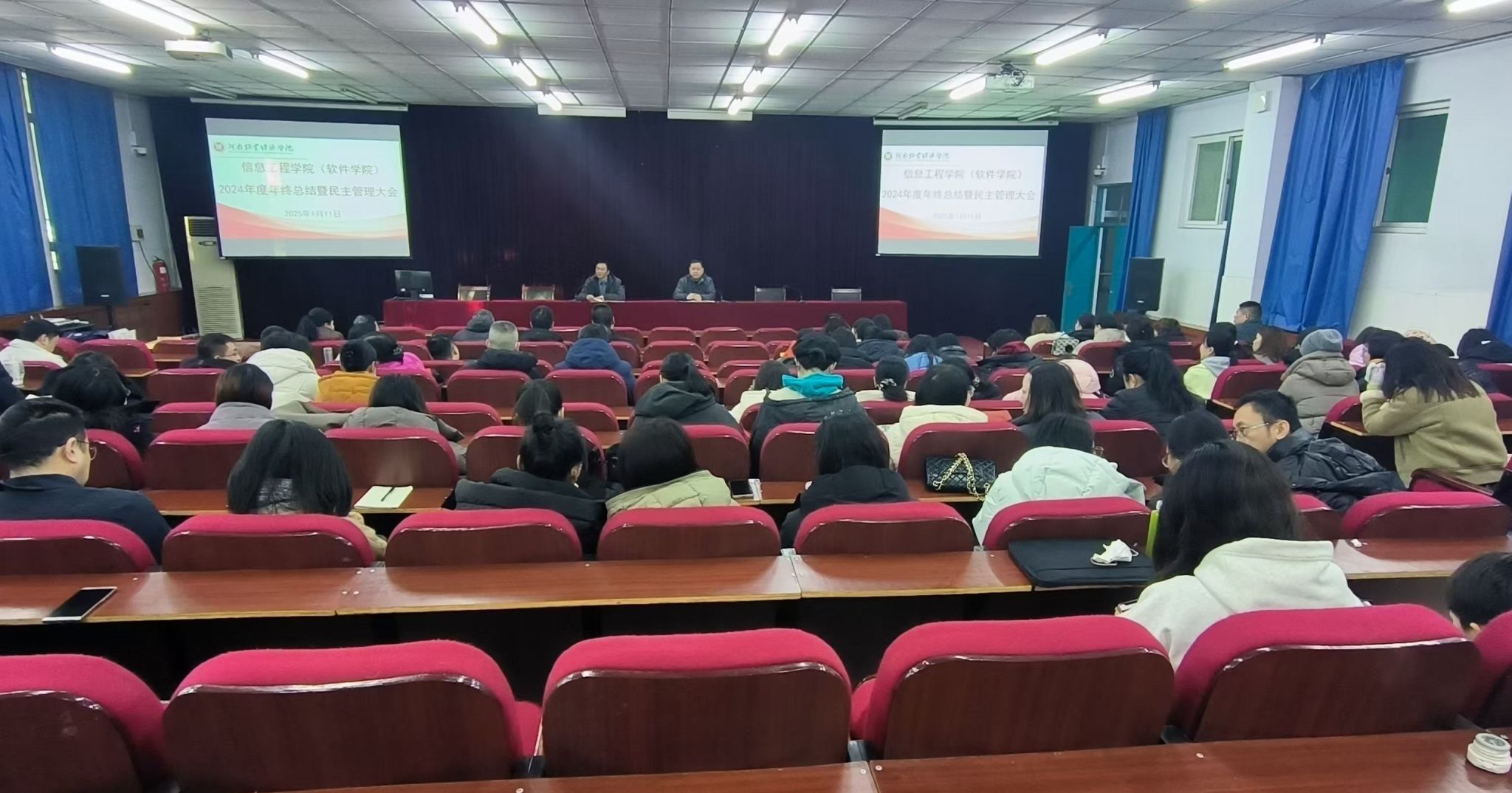 杨行昌书记做总结讲话,他指出:本次大会达到了预期的目标,是一个团结的大会、鼓劲的大会,2024年学院在各个方面都取得了不凡的业绩。2025年学院将在学校党委和行政的领导下,以习近平新时代中国特色社会主义思想为指导,紧紧围绕学院建设的总体思路和工作部署,持续推进学院内涵式发展;继续完善体制机制,推进特色化示范性软件学院建设,以深化产教融合为途径,以改革创新为驱动,建立健全软件学院的管理体制和运行机制;持续提升教育教学质量,充分利用现有教学资源,统筹安排教学任务,确保教学运行秩序;进一步创新学生管理模式,着力提升学生工作质量,围绕学生两校区分布、三种学制共存的现状,在管理的内容、方法、手段和渠道不断探索,努力构建高效的学生管理模式。