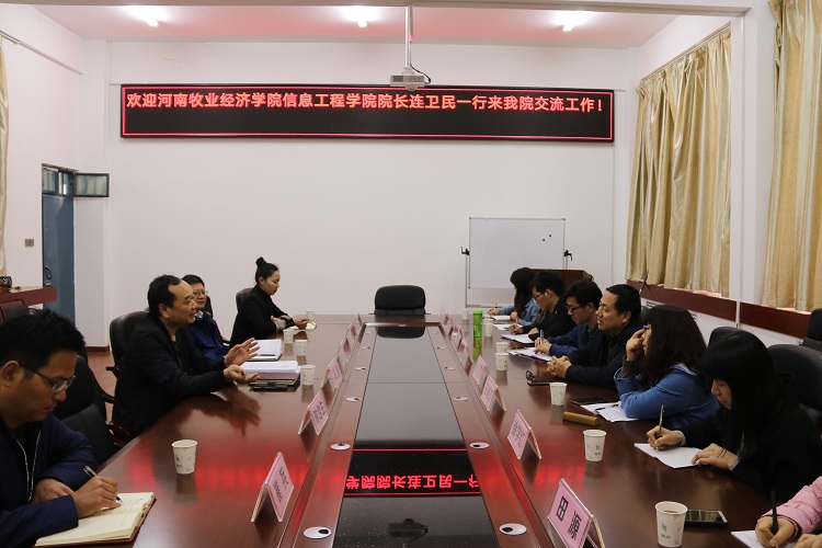当日下午,连卫民院长等一行10继续前往河南城建学院计算机与数据科学学院考察交流。该院院长何宗耀教授致欢迎词,并从师资队伍建设、人才引进、教研室建设等方面介绍了计算机与数据科学学院的基本情况会上,双方还就课程团队建设、学院特色活动和人才培养等工作进行了深入交流。随后何院长等人带领我院领导老师参观了数字媒体技术实验室、学生创新创业中心、学生心理咨询工作室、校企合作工作室等。