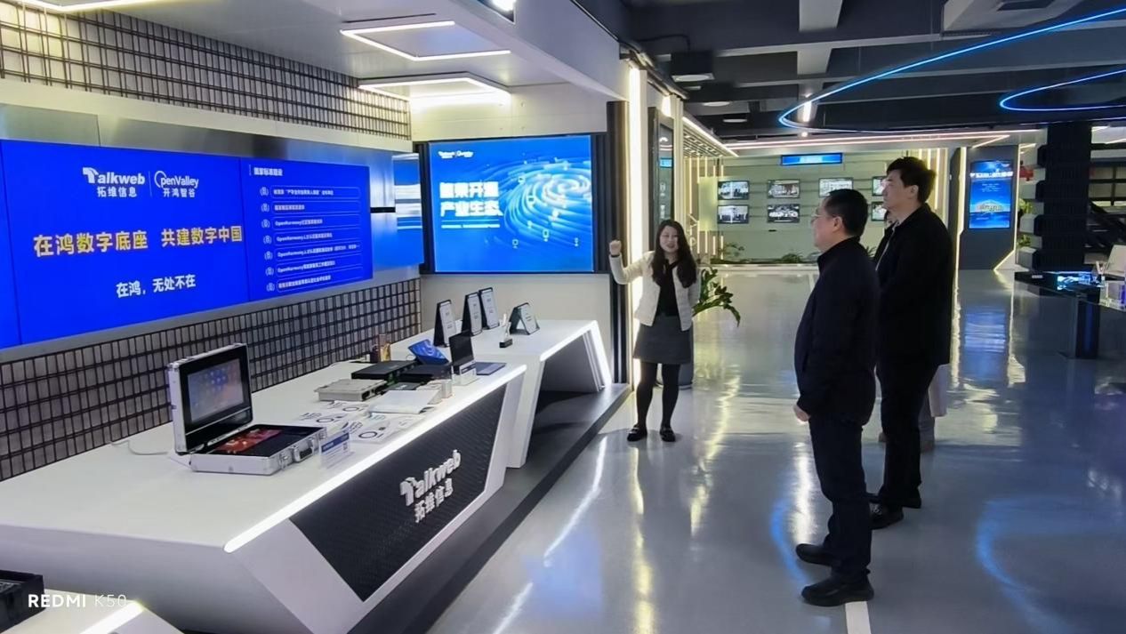 拓维信息营销服务体系副总裁欧阳晓强、拓维信息开鸿智谷产业与人才培养总监邓娟等多位高管热情接待了连卫民一行,并带领大家在企业数字化体验中心进行参观。欧阳晓强介绍了拓维公司的基本情况、企业发展战略、企业未来规划及人才需求等情况。座谈会上,连卫民院长介绍了我院的人才培养理念、教学模式及就业等工作,双方就行业现状、技术发展、人才需求、人才培养、供需现状等进行了深入交流,初步达成了人才培养与就业合作意向。