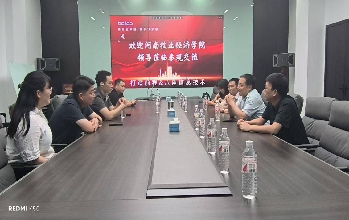 在郑州八角信息科技有限公司,政企部总经理张振华热情接待了学院一行人。然后详细介绍了公司的发展历程、业务范围、企业文化以及未来发展规划。郑州八角科技有限公司是一家专注于信息技术服务的科技型中小企业和高新技术企业。伴随业务持续拓展,对高素质专业人才的需求日益增长。随后,校企双方围绕人才培养、实习就业等方面进行了深入讨论与交流。