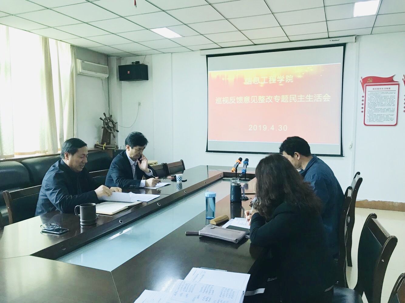 根据学校党委的统一部署,按照《关于召开省委巡视反馈意见整改专题民主生活会的通知》文件要求,信息工程党总支积极筹备,认真组织,通过前期开展理论学习中心组学习会强化精神学习、广泛征求意见建议、深入开展谈心谈话、深刻自查自省等环节,于4月30日上午9:00在williamhill威廉希尔会议室召开专题民主生活会。校纪委书记李中华、院长连卫民、党总支副书记蔡中民、副院长王桂枝、副院长张建伟参加了会议,院团总支书记买菁菁列席会议并做会议记录。会议由连卫民同志主持。