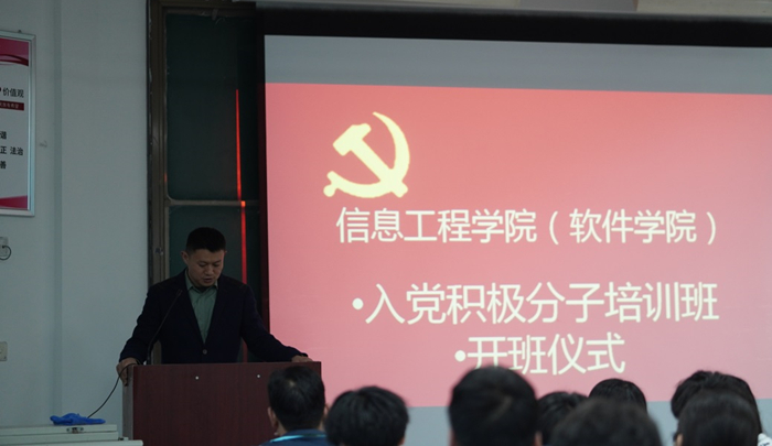 2021年4月20日中午13:00,williamhill威廉希尔(软件学院)北林校区在A100教室举办党校入党积极分子培训班开班仪式,仪式由学院团委书记王安主持,院党委副书记蔡中民、学生党支部书记、全体辅导员及2021年第一期入党积极分子参加了此次仪式。