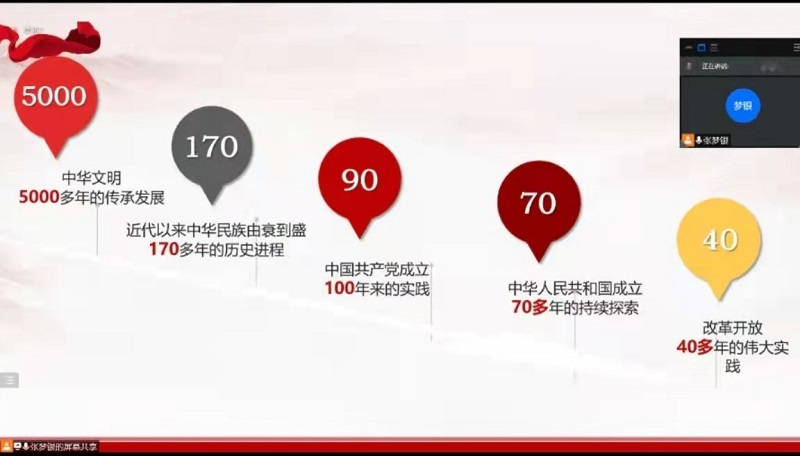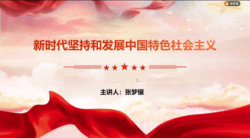 2022年3月25日晚七点,williamhill威廉希尔(软件学院)开展了2022年第一期入党积极分子培训班第五讲。我院张梦银老师为入党积极分子讲解了新时代发展中国特色社会主义的意义,并开展了以《坚持和发展中国特色社会主义》为主题的第五讲。