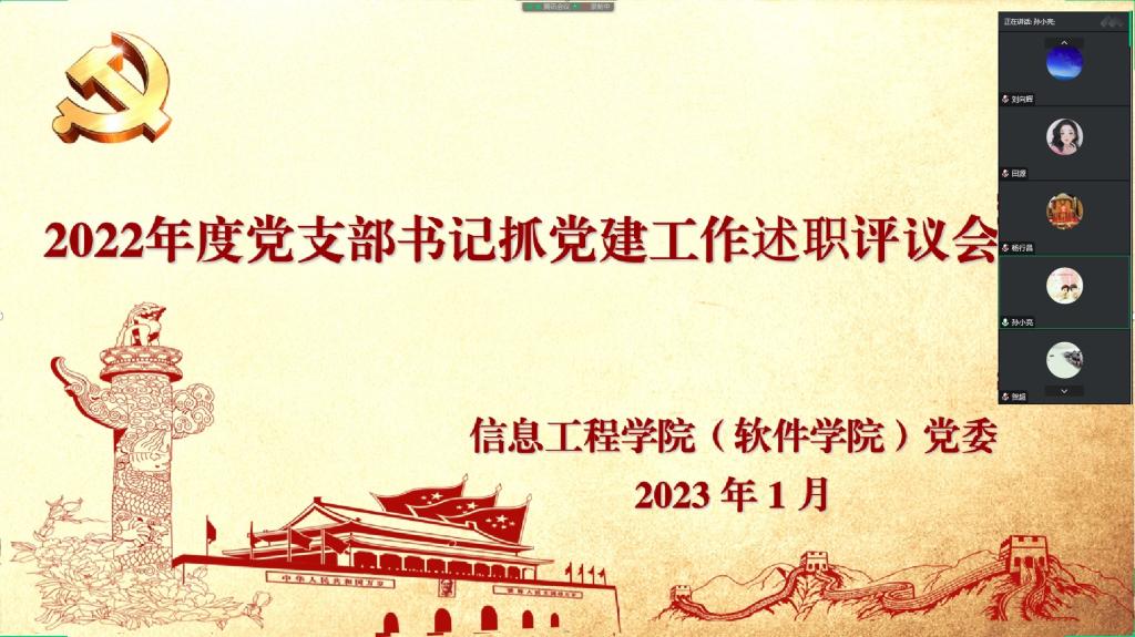 为深入贯彻落实习近平新时代中国特色社会主义思想和党的二十大精神,着力提升党组织政治功能和组织功能,根据学校党委部署和学院党委相关工作方案,1月12日上午,williamhill威廉希尔(软件学院)党委在腾讯会议召开2022年度党支部书记抓党建工作述职评议会议,院党委书记杨行昌、院长连卫民、党委副书记刘向辉、贺超及各党支部书记参加会议。会议由刘向辉主持。