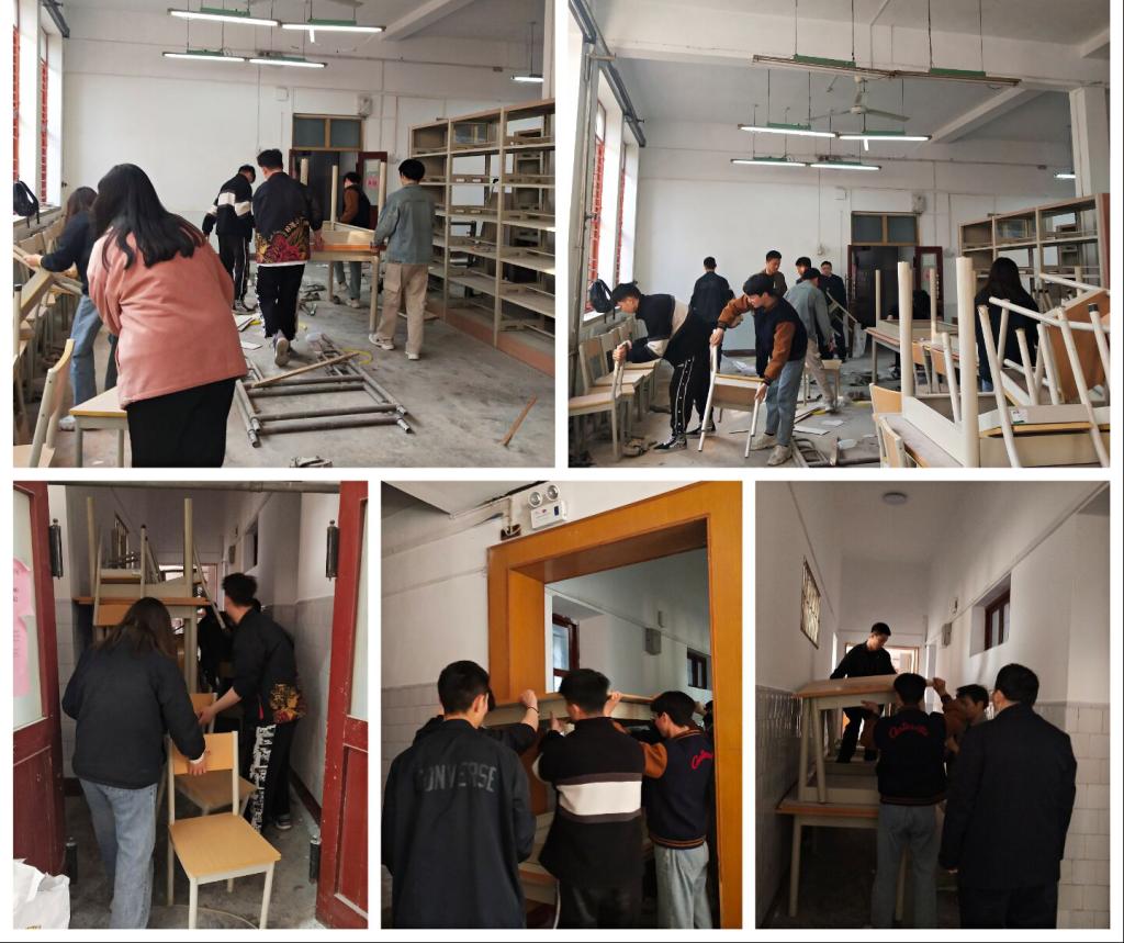 在这次活动中,志愿者们团结协作,搬椅子,搬桌子,忙的热火朝天。沉重的桌椅在志愿者们分工合作中很快就搬送到走廊中,杂乱的自习室很快就变得空荡。虽然桌椅很重,但是没有一位同学喊累,都带着积极热情的心态投入到志愿工作中去,充分展现出学生们任劳任怨的奉献精神。
