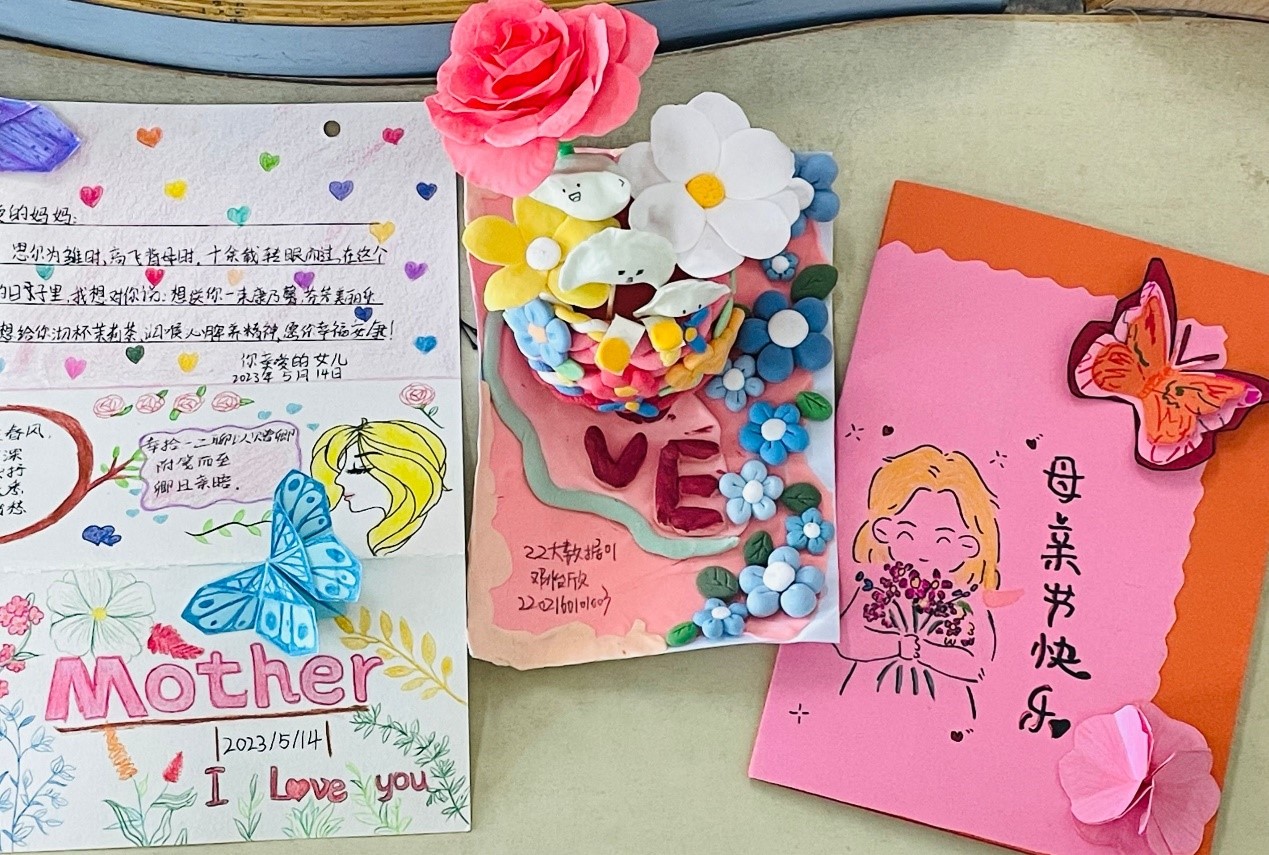 活动开始后,各班同学反响热烈,踊跃参与,纷纷动手制作各种各样的手工艺作品。“以花之名,用心说爱”,有的同学亲手制作纸花,用康乃馨、粉玫瑰、雏菊等寄托美好寓意,剪裁、拧捏、卷边、粘贴……大家发挥着自己的想象,制作出独一无二的手工作品,通过自己的双手,将心中的爱注入中。有的同学亲手制作贺卡,用各色的彩纸和彩笔,裁剪,书写,一笔笔描绘出对妈妈的爱。活动最后评审人员对参赛作品进行合理公正的评选,最终选出一等奖3个,二等奖5个,三等奖7个,优秀奖若干名并对获奖同学发放奖励对其作品给予支持和肯定。