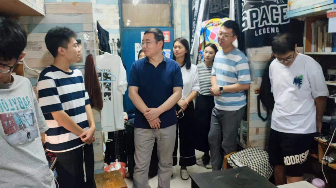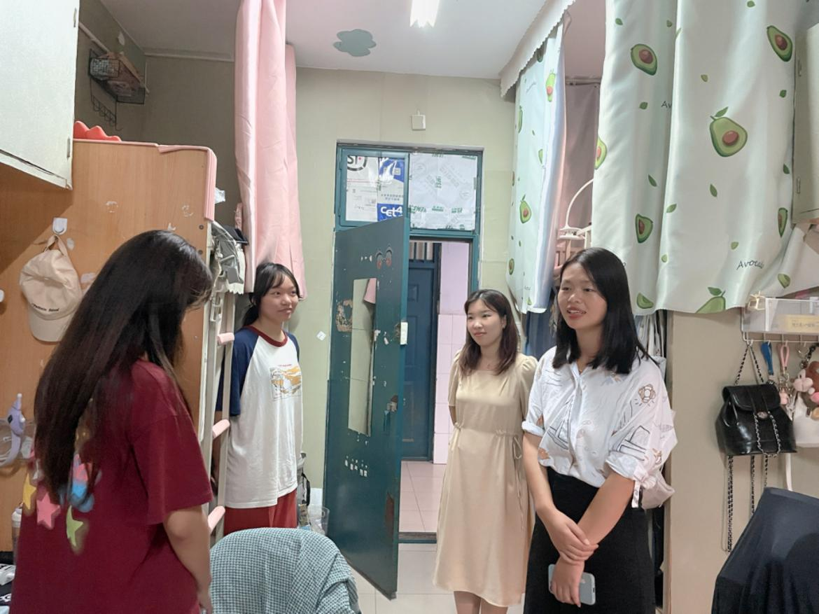 走进宿舍,刘书记亲切地询问同学们假期过得怎么样、对新学期有什么样的期待与目标,生活、学习方面有没有困难,叮嘱同学们在搞好学习的同时注意锻炼身体,保持高昂的精神和健康的体魄。在认真聆听了同学们对新学期的规划和想法后,鼓励同学们要把握大学生涯这个关键期,认真谋划今后发展方向,并为之付出努力。此外,走访老师们还就大家平时的学习情况、寝室同学间相处之道、如何养成良好的生活习惯等问题与同学们做了交流,并提醒同学们注意宿舍卫生及防火防盗安全,严禁使用违章电器,合理合规使用网络资源,营造积极健康的宿舍文化。