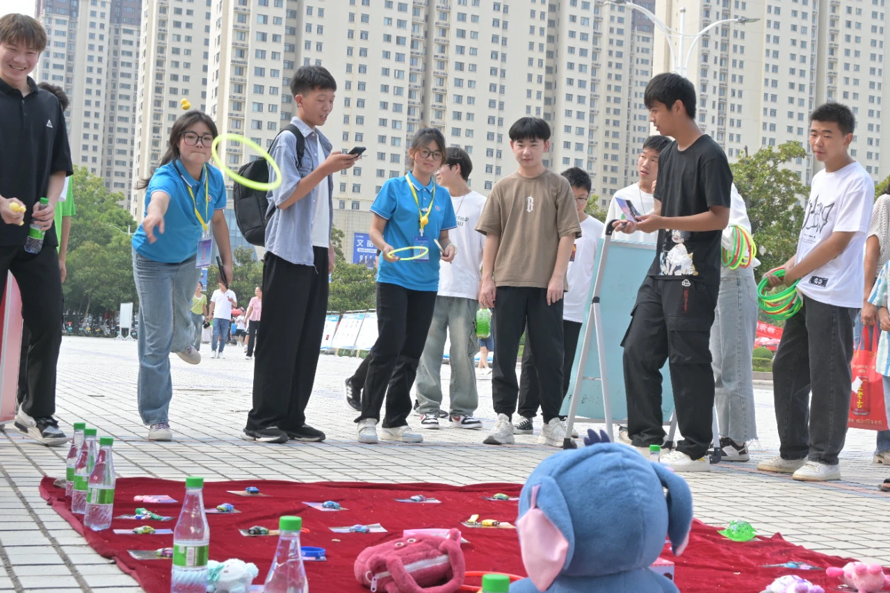 学院准备了校史校情套圈趣味活动,把准备好的小礼物放进写有校史校情问题的盒子里,学生可以进行套圈答题,获得暖心小礼物,新生们纷纷踊跃参与,现场气氛十分活跃。通过这一趣味活动,使得新生在轻松愉悦的氛围里了解到我校的校史校情,进一步感受到了学校学院的历史情怀。