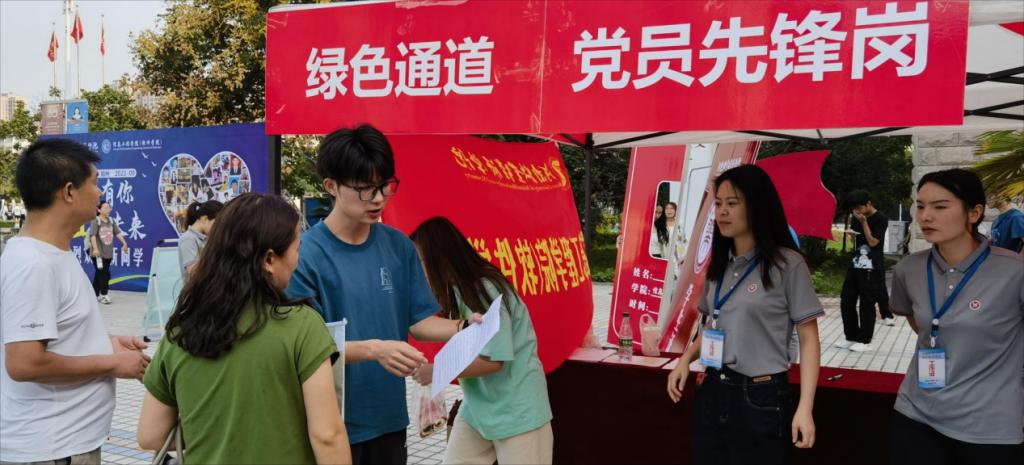 我院在新生报到现场设立“绿色通道”专区,由红信党员们自发组织志愿队,帮助学生了解资助相关政策,核验学生贫困资料,简化入学手续。旨在为家庭经济困难新生提供入学保障,确保其能顺利入学。