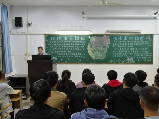 在各班团支书的策划下,团课以班级为单位有序进行。团课开始,团课主持人就本次团课主题详细的给同学们进行了阐述,她强调生态文明建设应功在当代、利在千秋。为了我们的美丽校园,为了我们的生态环境,大家应共同拒绝“白色污染”,为创建“美丽校园”添一份力,增一分彩。团课过程中,同学们积极发言,气氛活跃,纷纷表示,作为新时代新青年,一定要有“保护环境,人人有责”的环保意识,积极传播生态环境保护理念,拒绝“白色污染”,为保护我们所生活的环境做出自己的努力。在此次团课上,同学们遵守纪律,保持教室干净整洁,使此次团课达到了良好的教育效果。