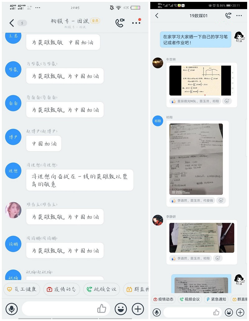 本次团课由团课主持人详细阐述了大学生成长成才的重要性,并带领同学们一起讨论分享了如何在疫情期间做到“停课不停学”,有效开展学习;如何正确处理大我和小我的关系、个人和国家之间的关系;如何结合专业参与防疫工作等内容。在团课上,同学们分享了个人近来阅读经典图书的心得感想,更是以晒作业,晒学习,晒计划的方式纷纷响应停课不停学倡议活动。团课主持人强调,疫情当前,大学生应该结合自己所学专业积极参与防疫工作,学好专业知识报效祖国。作为新时代大学生应该懂得科学辩证看待问题,明辨是非,知晓身边的战役英雄们的轶事并深刻学习他们的精神,进一步树立正确的世界观、人生观、价值观。