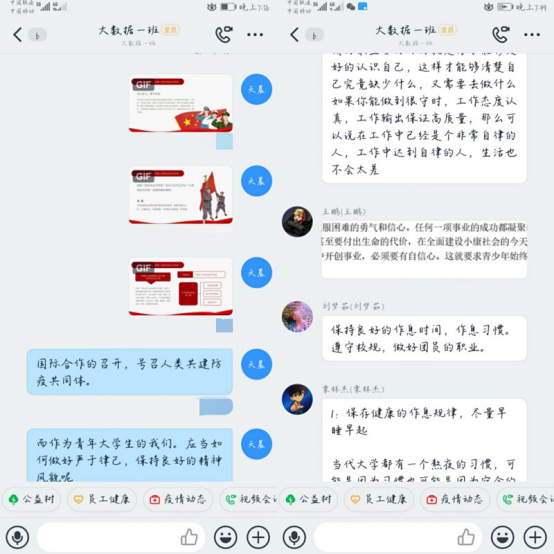 为深入学习习近平总书记提出的人类命运共同体理念,引导团员青年坚定制度自信,williamhill威廉希尔(软件学院)于2020年5月21日在钉钉班级群开展“携手抗疫显大国担当,勇担使命展青春风采”线上主题团课。