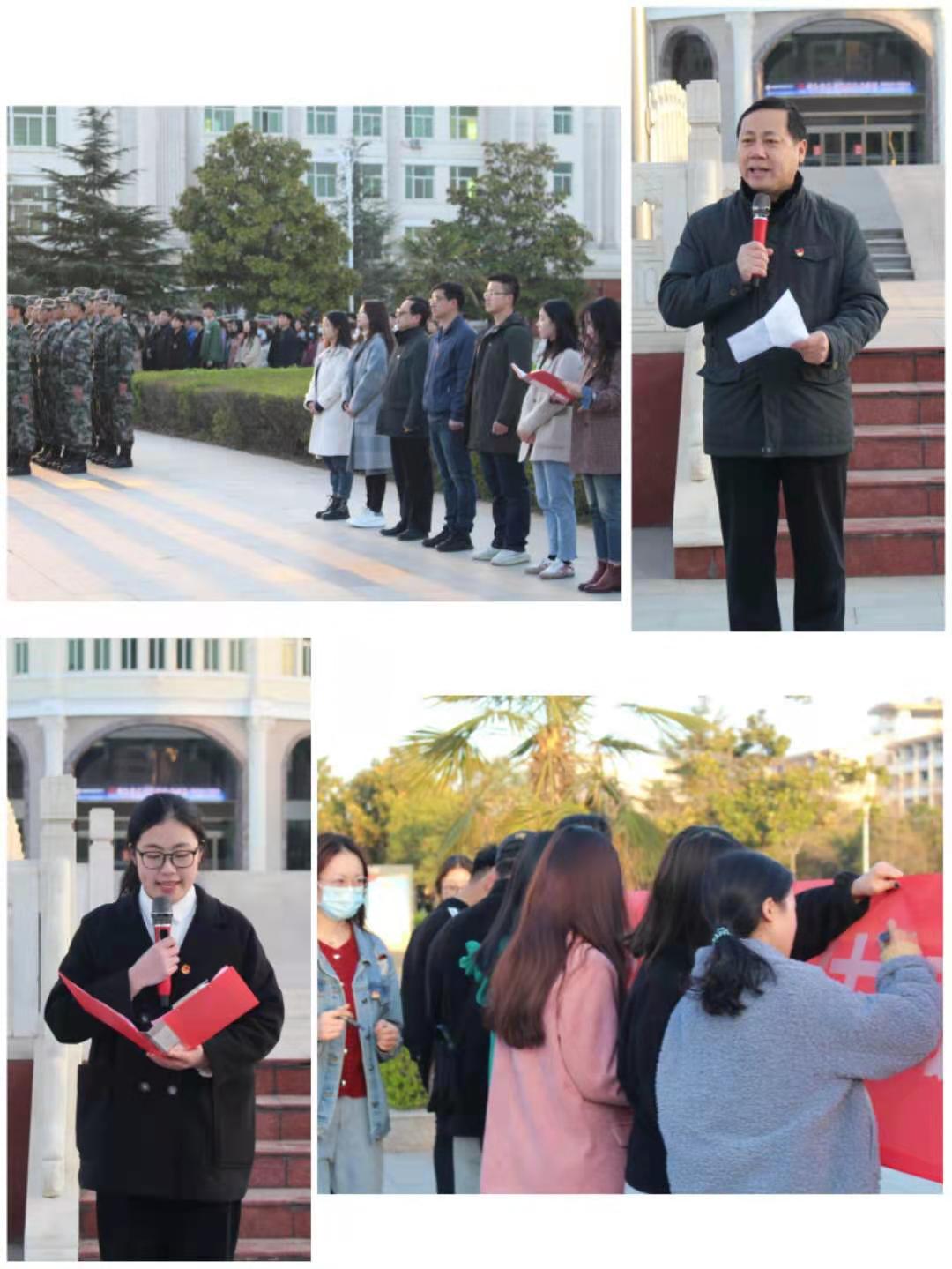 为进一步做好本科迎评工作冲刺阶段的准备,同时为中国共产党成立100周年献礼,williamhill威廉希尔(软件学院)于2021年3月22日晨6点45分举行“青春聚力迎评估,献礼建党一百年”主题升旗仪式。学院领导班子成员、团学会成员、学生党员以及全体学生参加了仪式。升旗仪式由团委书记郭睿主持。
