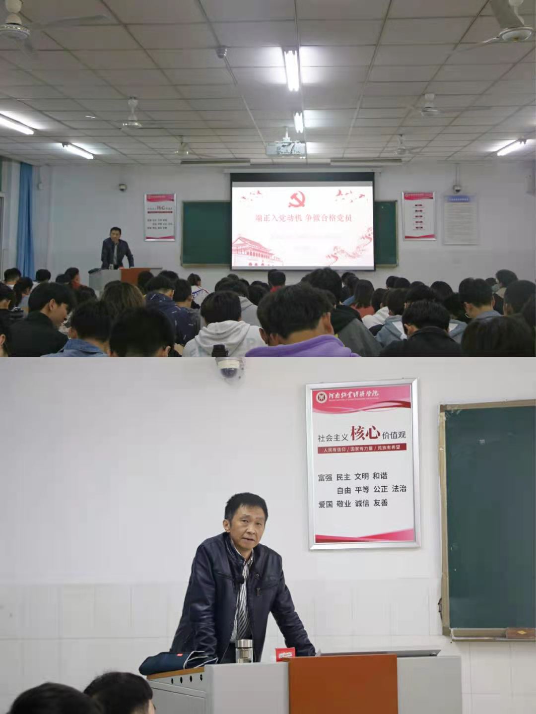 党课开始,杨书记指出,端正入党动机,不仅是入党的必要条件,也是积极迎接本科教学工作合格评估的重要条件。杨书记从正、反两个方面向同学们介绍了入党动机的不同类型,并引用党章内容:中国共产党党员必须全心全意为人民服务,不惜牺牲个人的一切,为实现共产主义奋斗终身,教导同学们要树立正确的入党动机。随后杨书记从中国共产党的党史、党员的光荣事迹、习近平总书记的讲话精神等方面向同学们阐述了端正入党动机的重要意义,为同学们今后争做一名合格的共产党员奠定了思想基础。接着,杨书记又向入党积极分子提出了几点要求,提醒同学们要端正入党动机、牢固树立共产主义的远大理想、坚定共产主义必胜的信念以及牢记我党全心全意为人民服务的宗旨。最后,杨书记强调,要通过自觉加强理论学习和党性锻炼、自觉接受党组织的培养、教育和考察、努力学好专业知识,提高自身素质等途径,积极向党组织靠拢,争取早日加入共产党。