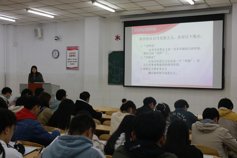 党课伊始,赵坤老师首先带领大家学习了《中国共产党》党章,以生动的话语让大家更好地理解党的指导思想和行动指南。随后,赵坤老师详细地为大家讲解了马克思列宁主义的内容,并举出实际的例子,在讲解的基础上更加深了同学们的印象以便于大家理解党的指导思想。最后,赵坤老师结合毛泽东思想、邓小平理论、“三个代表”重要思想,极大展现了马克思主义中国化对中国的影响非凡。并教育同学们为实现党的伟大梦想而奋斗,使同学们认识到习近平新时代中国特色社会主义思想是全党全中国人民为实现中华民族伟大复兴而奋斗的行动指南,必须长期坚持并不断发展。