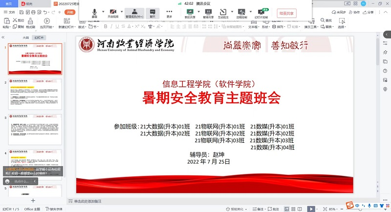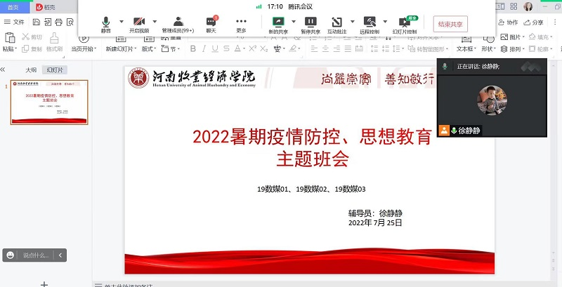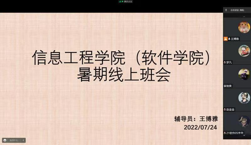 为切实做好暑假期间学生思想教育及管理服务工作,提高学生安全防范意识,确保学生度过一个平安充实有序的假期,7月16日—7月25日,williamhill威廉希尔(软件学院)辅导员分别为所负责班级召开线上暑期思想教育及安全教育班会,班会由辅导员主持,全体学生参加。