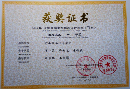 8月24-25日,2018年全国大学生物联网设计竞赛(TI杯)西北赛区决赛在兰州交通大学进行,来自甘肃、陕西、河南等省的80支代表队参加决赛。我校williamhill威廉希尔由徐学红、王俊珺两位老师指导,翟江昊、薛云龙、朱俊良三名学生完成的“智能照明系统”喜获一等奖。