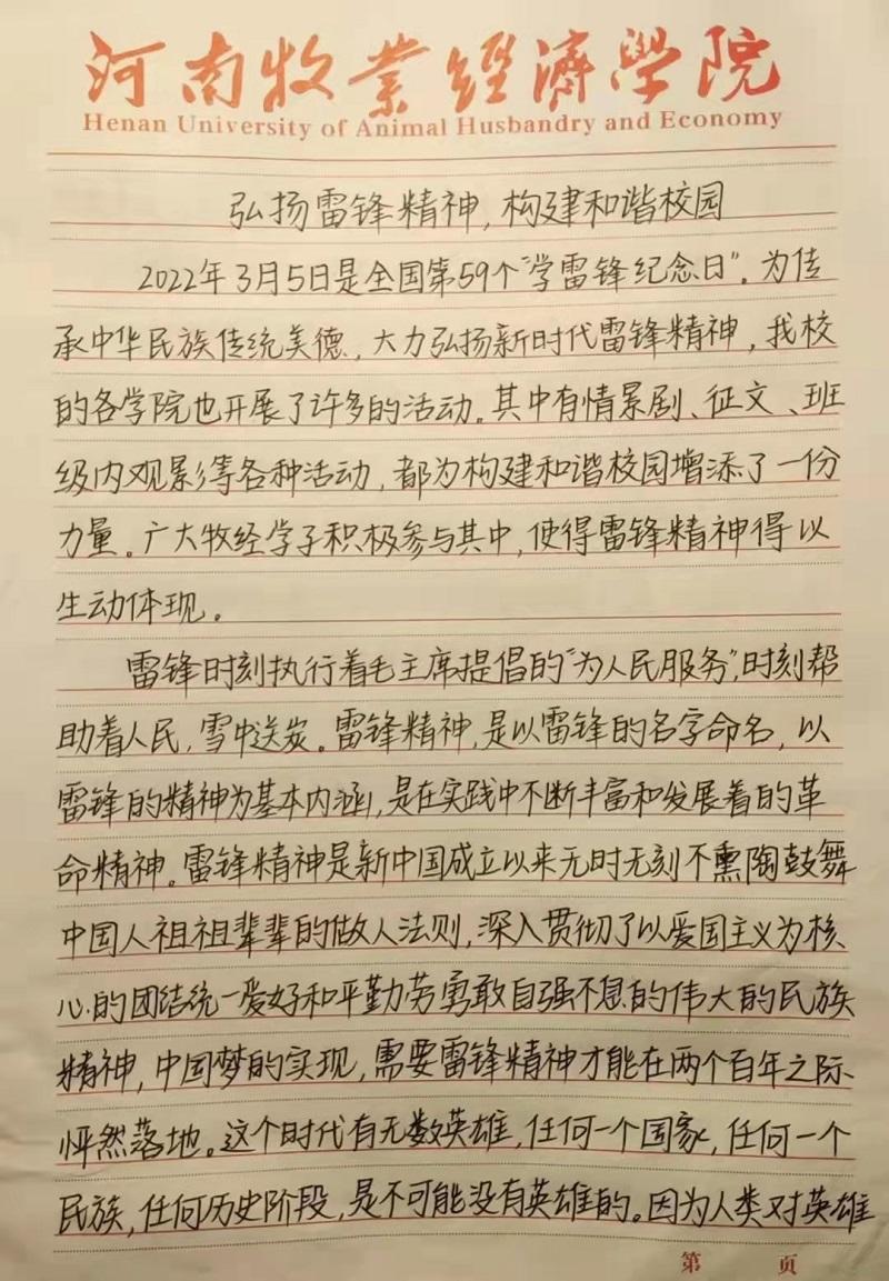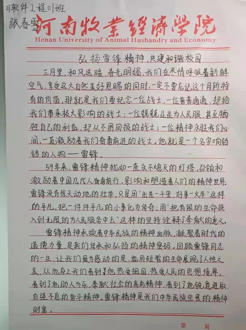 本次活动面向williamhill威廉希尔(软件学院)全体学生,本次活动历时7天,共征集60余篇参赛作品,参与活动的同学以“弘扬雷锋精神,构建和谐校园”为主题撰写文章,同学们以个人的故事续写雷锋精神,用文章记录身边的“螺丝钉精神”,在本次征文中看出了信工学子对雷锋同志热爱党、热爱祖国、热爱社会主义的崇高理想与服务人民、助人为乐等奉献精神的钦佩与理解,同时文章中也表达了对雷锋精神的坚韧追求,以及我院学生对争做新时代青年志愿者的热切期望。