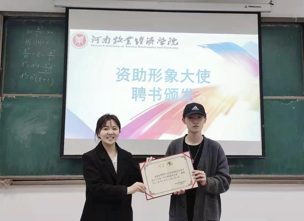 会议开始,首先由秦萌老师为赵晨畅颁发‘资助形象大师’聘书,台下掌声热烈。然后资助形象大使赵晨畅为同学们宣讲国家资助政策,资助政策内容包含国家资助政策、我校学生资助工作体系、兵役资助政策。本次资助政策宣讲活动是分三个课时。最后,秦萌老师强调这次活动开展的最终目的是为了让大家了解相关政策,做到资助与育人相统一,共同营造温馨的资助氛围。