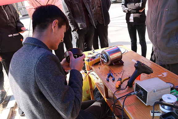 本次活动有十几名团学会成员和信息电子技术协会成员参加。前来维修的师生络绎不绝,活动共收取维修电器40余件,同学们接收到需要维修的家电主要有:电吹风,电风扇,台灯,电磁炉,电热水壶等电器。本次活动有序进行:师生送来的电器由专门登记人员登记电器名称、哪里坏,联系人及其电话,再由维修员进行检测维修,最后将维修效果登记反馈给师生。活动一直进行到周日下午5点。在这次活动中,同学们发扬不怕苦,不怕累,不怕麻烦的精神,争取为老师和同学修好更多电器,为他们带来更多方便。