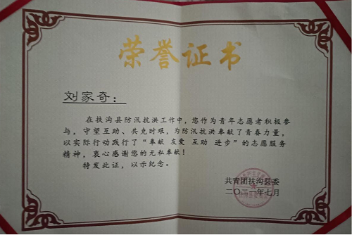 20级软件专业刘家奇,家住周口市扶沟县。在自己家乡仍然被水包围的情况下,他积极主动投身青年志愿者,参与到扶沟县的防汛救灾队伍当中去。他遗憾在灾难面前不能像人民子弟兵、医生、消防员、救援队一样救治伤患、泄洪救灾、奔赴一线,但他尽自己所能第一时间报名志愿者。在志愿服务中负责核实物资信息及救援信息,将食品物资发放到各社区街道受灾群众手里,为防汛救灾贡献一份自己的力量。
