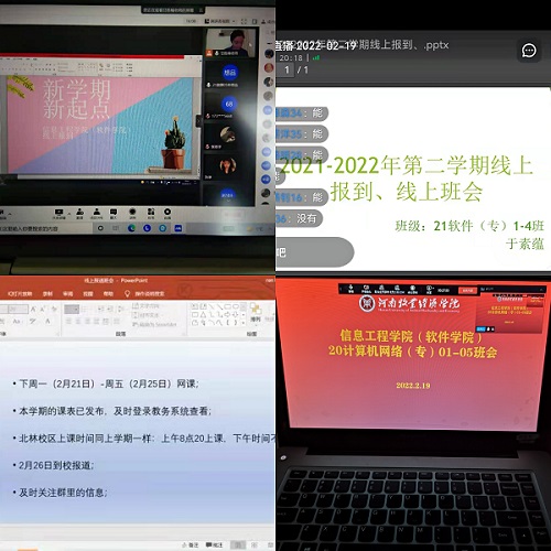 首先,按照学校2022年春季学期开学要求,坚持疫情防控“外防输入、内防反弹”原则,各班辅导员督促同学们进行群接龙线上报到,了解掌握同学们是否具备上网课的条件,同时提醒同学们做好自我防护,调整作息规律,以积极饱满的精神姿态投入新学期的工作学习中。其次,辅导员要求大家认真学习线上课程内容,及时完成任课老师发布的学习任务,课下认真复习,督促学生完成线上学习任务,确保教学进度和教学效果,保证学习效果。再次,辅导员就学校疫情防控工作要求做出重点强调,任何同学不得提前返校,配合做好每天辅导猫日报告打卡,并随时关注老师和班长发布的重要信息。最后,辅导员老师向同学们再三强调线下返校报到时间、需要注意事项、报到时所需提交的材料等报到流程,确保同学们平安开学,开学平安。