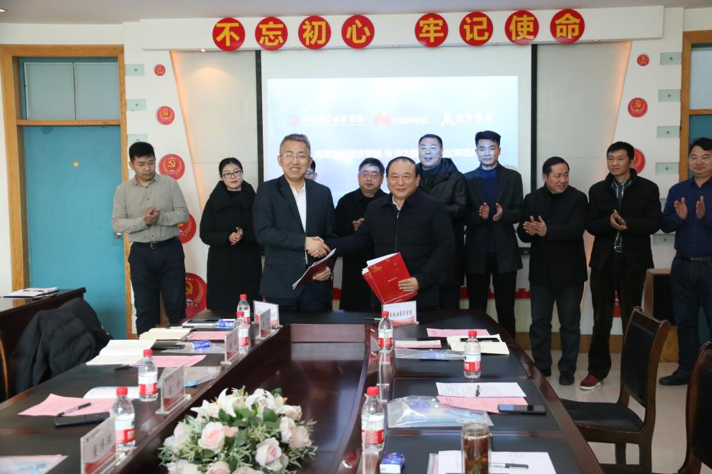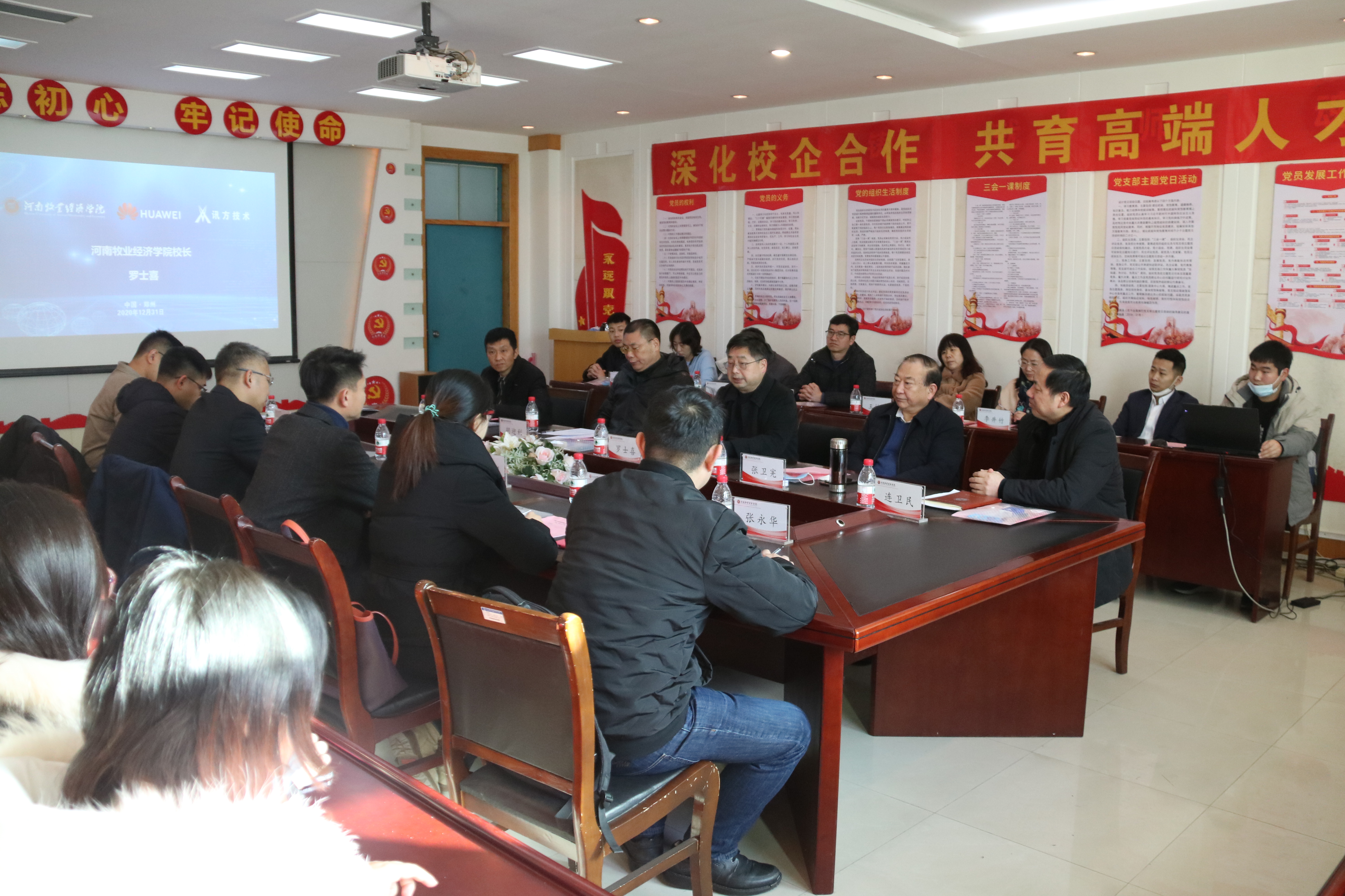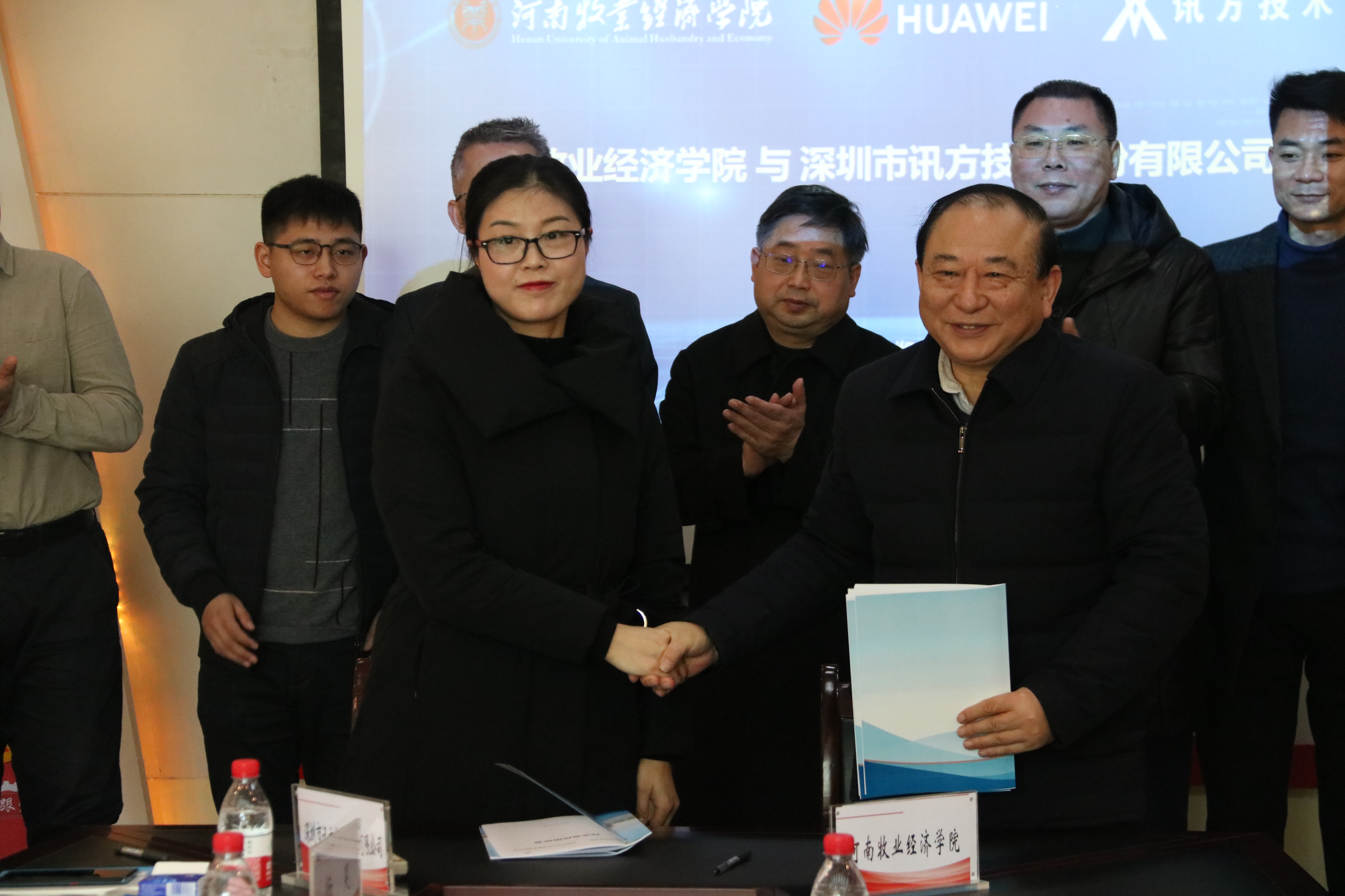 12月31日,我校在综合实验楼会议室举行与华为技术有限公司、深圳市讯方技术股份有限公司共建“华为ICT学院”签约暨揭牌仪式。校长罗士喜、副校长张卫宪、学校社会服务办公室主任胡迎利、williamhill威廉希尔党委书记杨行昌、williamhill威廉希尔院长连卫民、华为技术有限公司河南代表处政企教育行业总经理张轩、深圳市讯方技术股份有限公司西北大区总经理董博渊,以及公司和教师代表参加了会议。会议由学校社会服务办公室主任胡迎利主持。