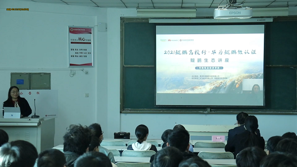 连院长在讲话中指出发展鲲鹏计算产业,是河南省委省政府着眼于全省经济结构调整和产业转型需求,是加快数字经济发展的重大决策。我校积极响应省委省政府的号召,在教学资源、实践环境、认证培训、学生实习等专业建设环节中与企业开展深度合作,通过校企双方的共同努力,为我省数字经济发展和信息产业国产化培养合格鲲鹏人才。连院长对我院鲲鹏方向学生寄予了很大的期望,希望同学们通过本次活动了解华为鲲鹏云计算最新技术,掌握鲲鹏知识技能,融入面向智能时代的新型算力生态圈,为计算产业的发展贡献青春力量。最后,连院长预祝本次活动取得圆满成功。希望所有同学通过努力学习,都可以取得华为鲲鹏微认证的证书。黄河科技集团创新有限公司人才培养部周静总经理对省鲲鹏生态体系建设、校企合作人才培养与微认证活动等给予了进一步的介绍与说明,同时预祝活动圆满成功。