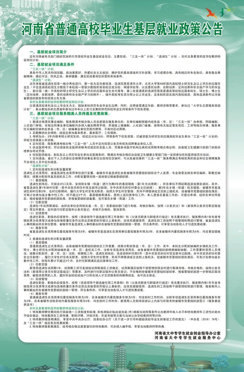 普通高校毕业生基层就业政策公告